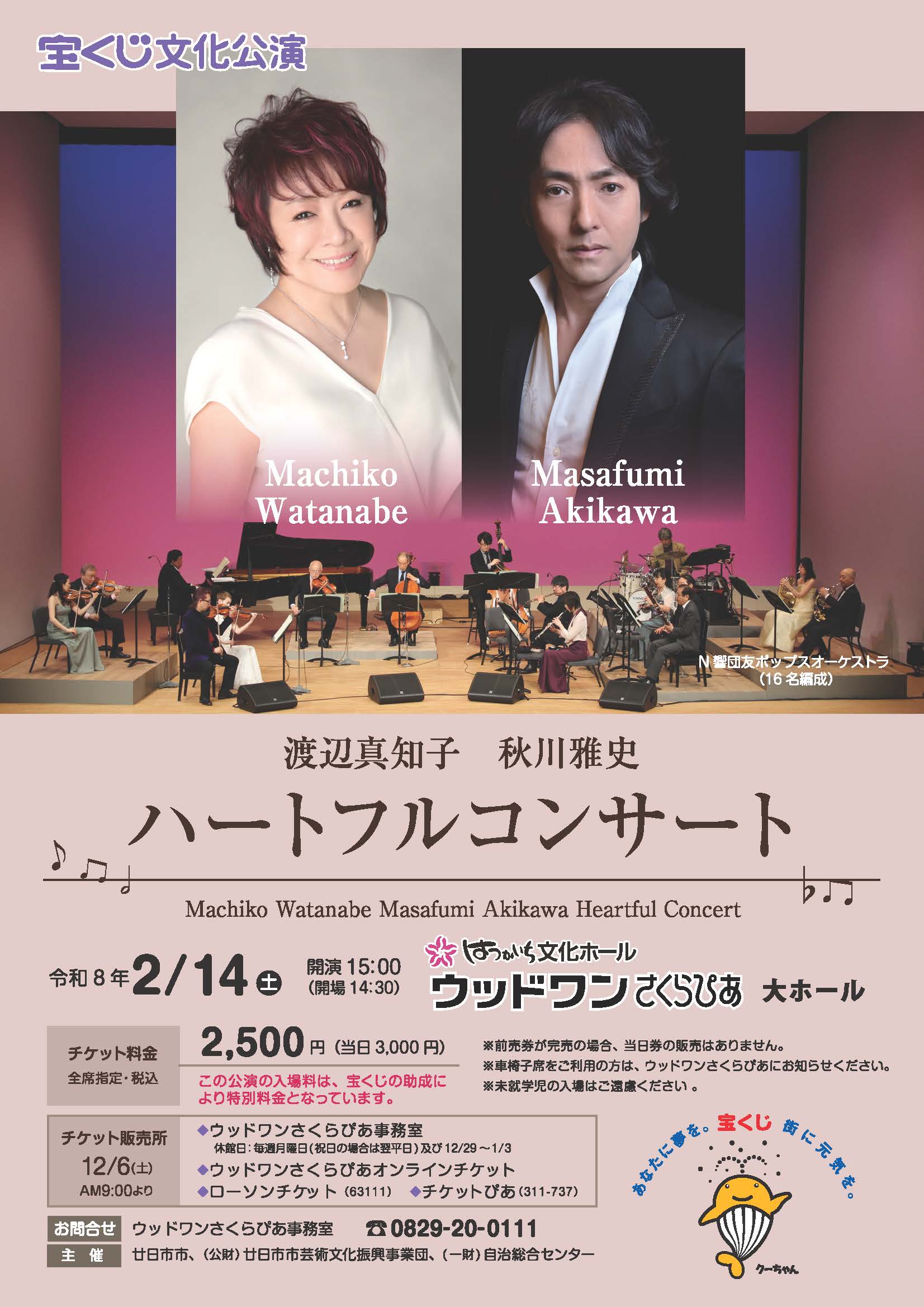 コンサートコンサート2026/2/15 渡辺真知子 秋川雅史 ハートフルコンサート